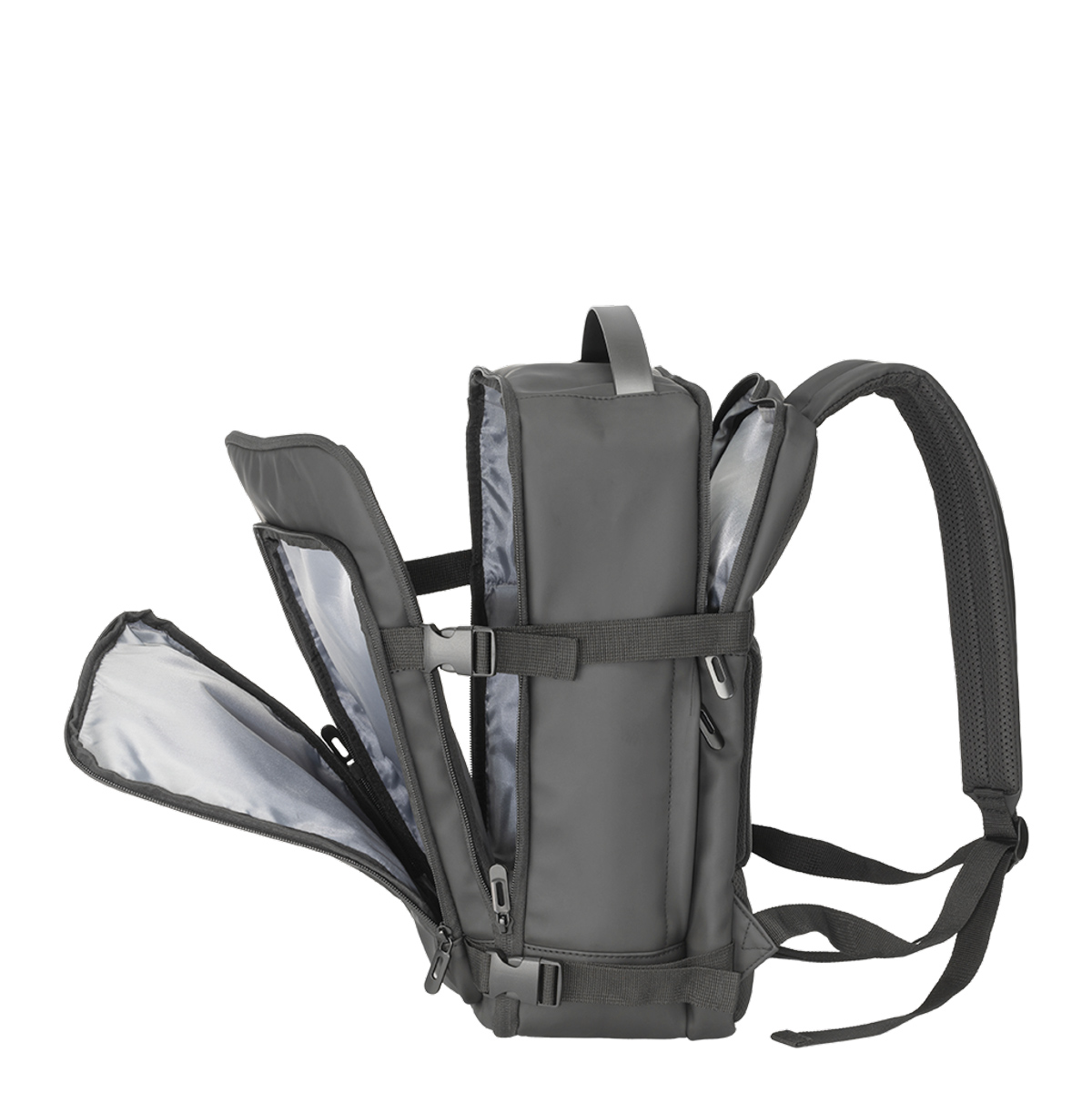 Compatto ma capiente, questo zaino da viaggio (25 x 40 x 20 cm) è realizzato in morbido materiale PU resistente all’acqua, ideale per affrontare ogni spostamento con stile e praticità. Lo scomparto principale è ampio e versatile, mentre la tasca posteriore imbottita protegge notebook fino a 15". La tasca frontale con zip consente un accesso rapido agli oggetti essenziali. Il comfort è assicurato da schienale e spallacci imbottiti in materiale traspirante. Dotato di cinghie di sicurezza e sistema di aggancio ai trolley, è perfetto per viaggiatori dinamici e professionisti in movimento.