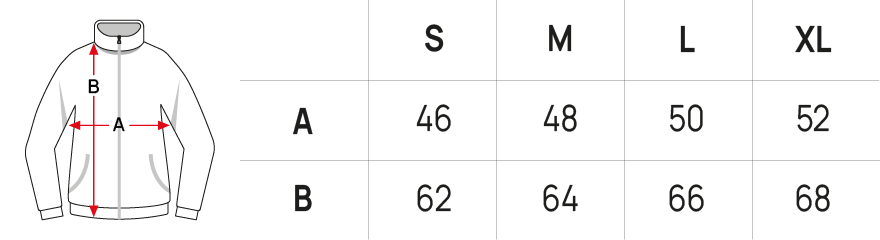 This turtleneck sweatshirt is made with a composition of 80% cotton and 20% polyester, offering comfort and durability. It features a turtleneck, full-length covered zip, two open welt pockets, elasticated rib collar, cuffs and bottom, inner neck reinforcement tape and felled seams for greater durability.